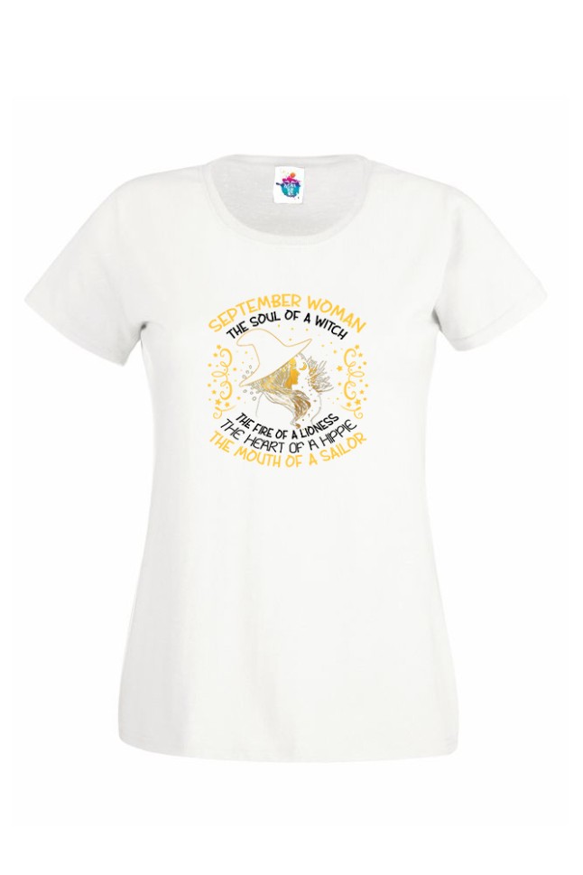 Дамска Тениска За Рожден Ден The Soul Of A Witch За Септември