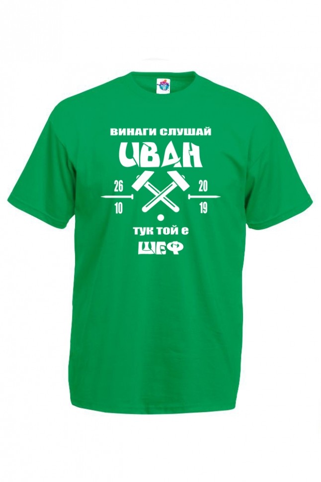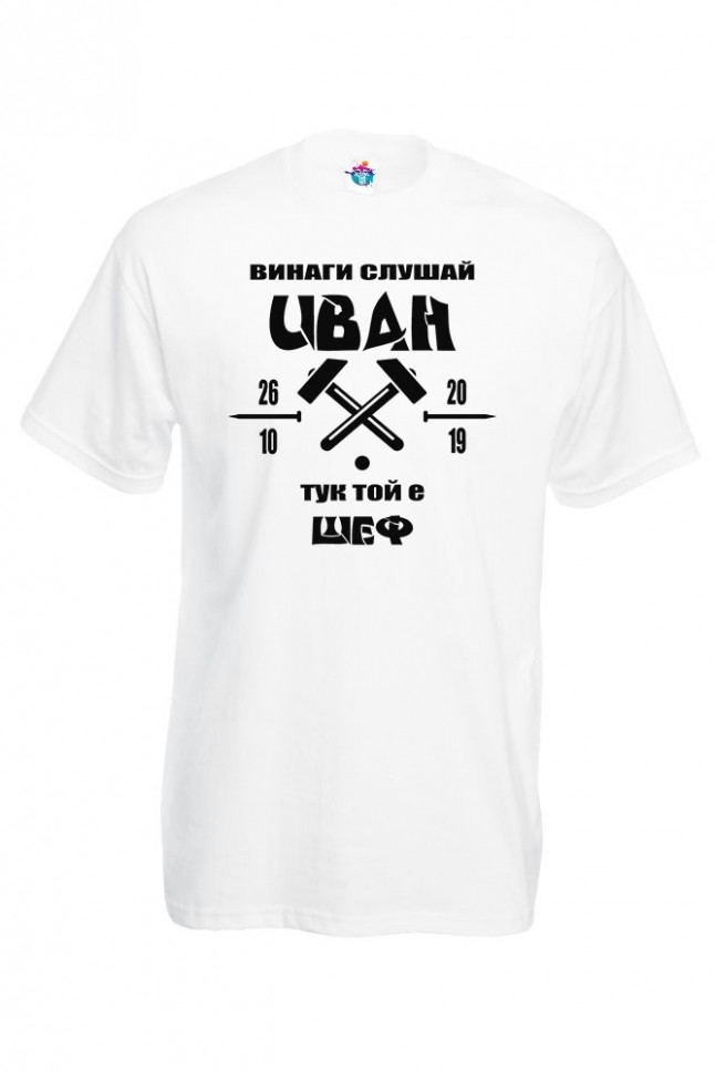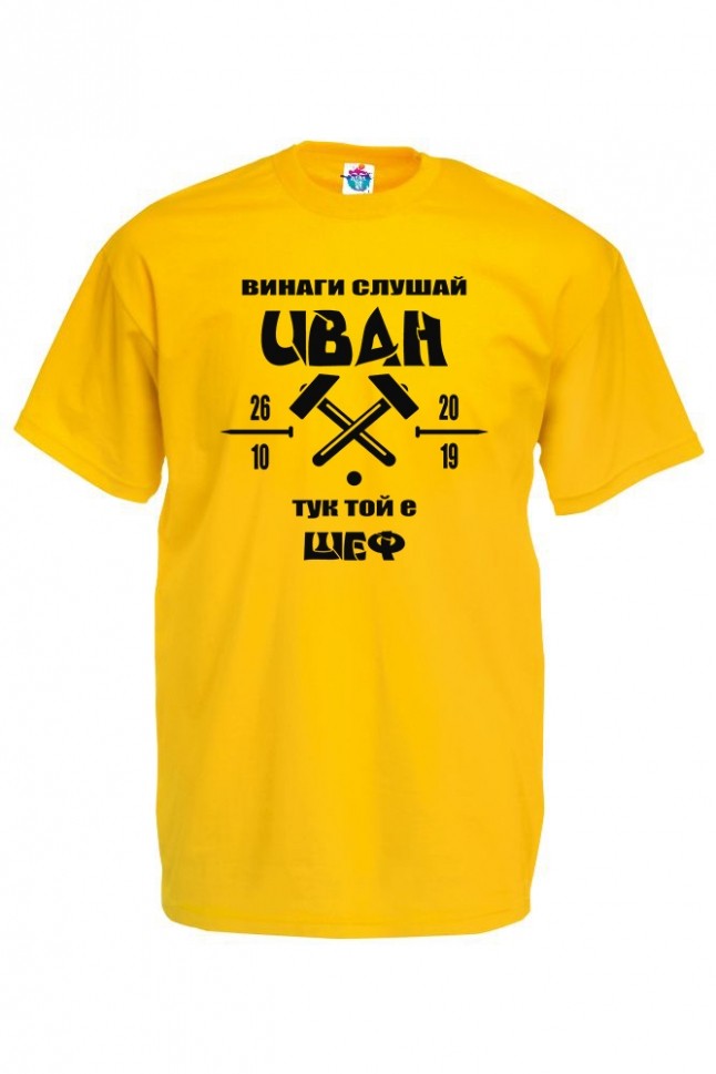 Мъжка тениска за Ивановден ТУК ТОЙ Е ШЕФ